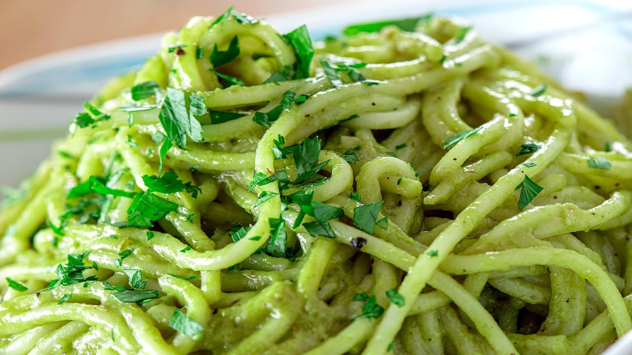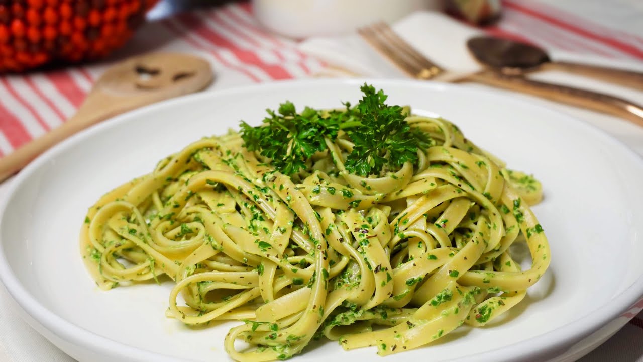 Fetuccini al pesto (con albaca y aceite de oliva)