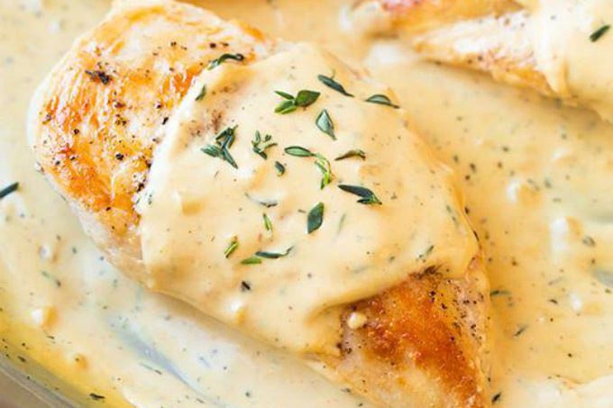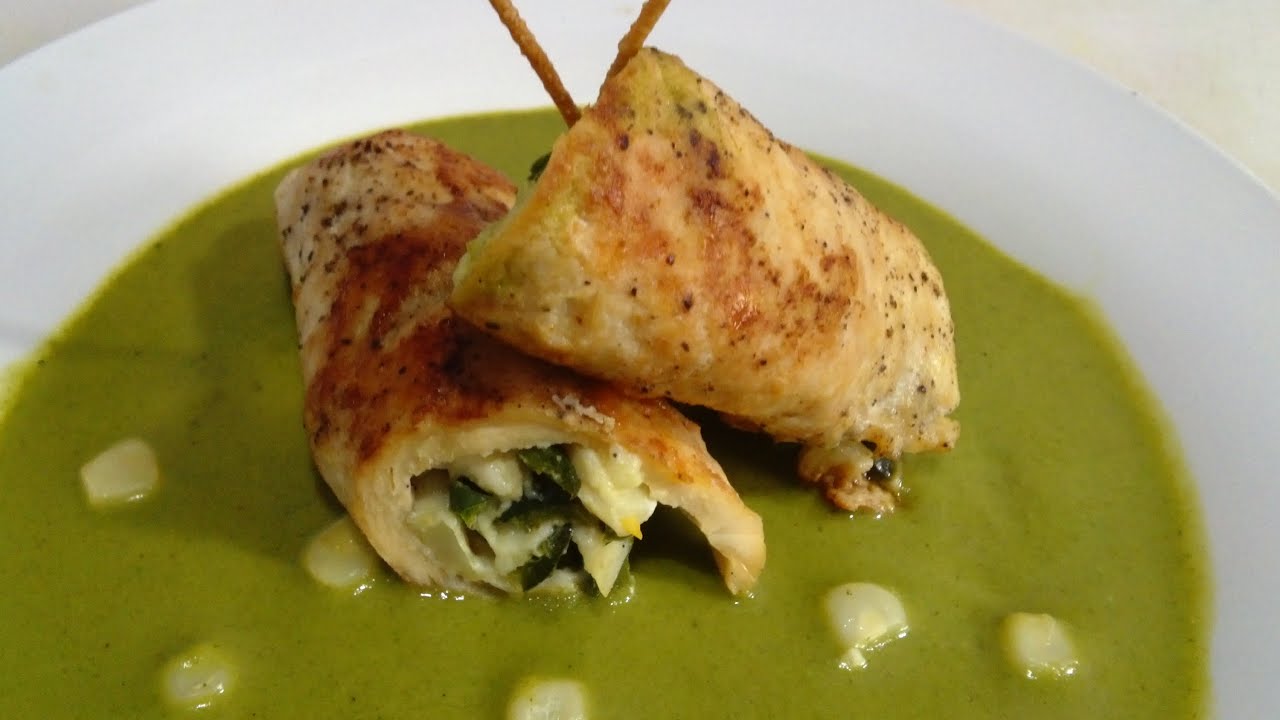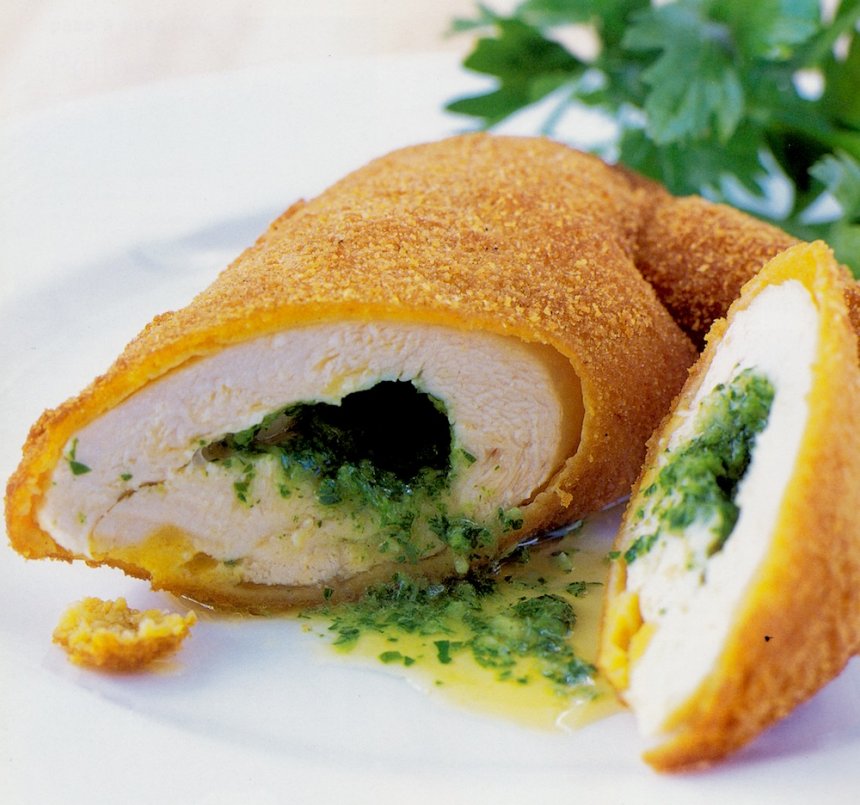 Pechuga de pollo a la Kiev (rellena de queso y espinaca en salsa de champiñones)
